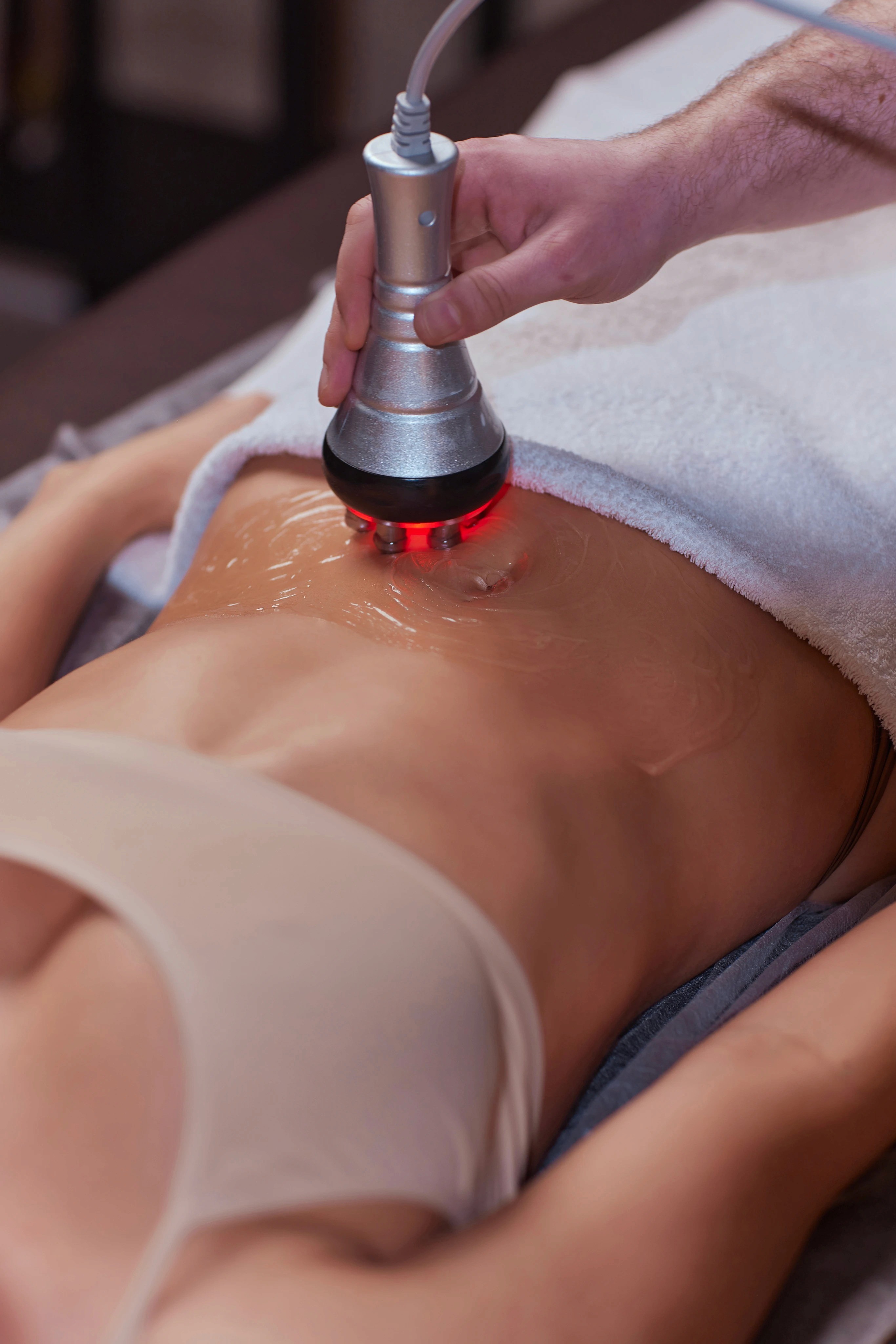 A massagem técnica complementa a ação térmica, promovendo drenagem, remodelagem e tonificação muscular.